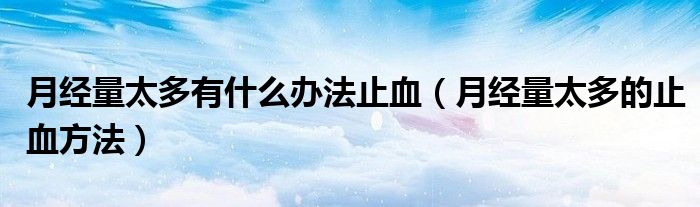 摘要大家好,知識(shí)小編來為大家解答以上的問題。月經(jīng)量太多有什么辦法止血,月經(jīng)量太多的止血方法很多人還不知道,現(xiàn)在讓我們一起來看看吧!1、