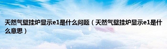 大家好,小育來(lái)為大家講解下。天然氣壁掛爐顯示e1是什么問題,天然氣壁掛爐顯示e1是什么意思很多人還不知道,現(xiàn)在讓我們一起來(lái)看看吧!