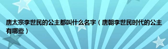 摘要大家好,小育來(lái)為大家講解下。唐太宗李世民的公主都叫什么名字,唐朝李世民時(shí)代的公主有哪些很多人還不知道,現(xiàn)在讓我們一起來(lái)看看吧!1、