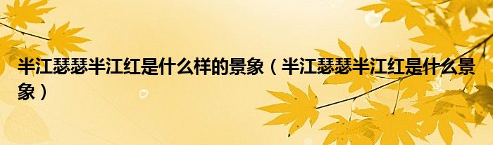大家好,小育來為大家講解下。半江瑟瑟半江紅是什么樣的景象,半江瑟瑟半江紅是什么景象很多人還不知道,現(xiàn)在讓我們一起來看看吧!