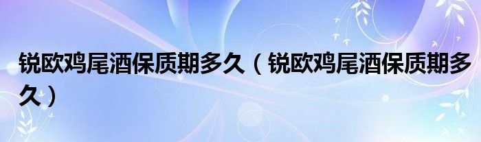 大家好,小育來為大家講解下。銳歐雞尾酒保質(zhì)期多久,銳歐雞尾酒保質(zhì)期多久很多人還不知道,現(xiàn)在讓我們一起來看看吧!