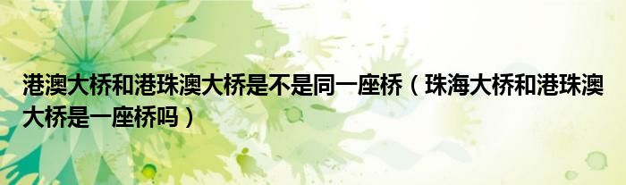 大家好,小育來為大家講解下。港澳大橋和港珠澳大橋是不是同一座橋,珠海大橋和港珠澳大橋是一座橋嗎很多人還不知道,現(xiàn)在讓我們一起來看看吧!