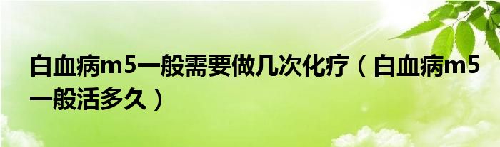 摘要大家好,知識(shí)小編來(lái)為大家解答以上的問(wèn)題。白血病m5一般需要做幾次化療,白血病m5一般活多久很多人還不知道,現(xiàn)在讓我們一起來(lái)看看吧!M5是