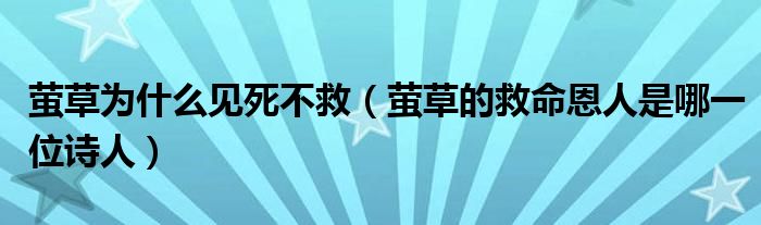 大家好,小育來為大家講解下。螢草為什么見死不救,螢草的救命恩人是哪一位詩人很多人還不知道,現(xiàn)在讓我們一起來看看吧!