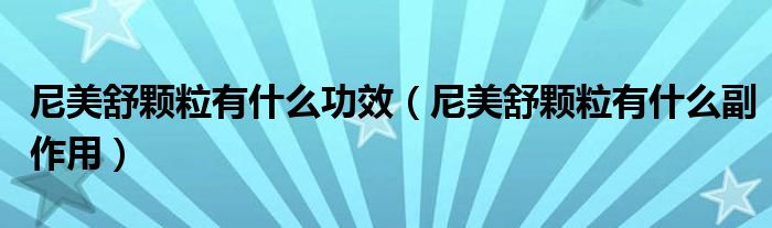 大家好,知識小編來為大家解答以上的問題。尼美舒顆粒有什么功效,尼美舒顆粒有什么副作用很多人還不知道,現(xiàn)在讓我們一起來看看吧!