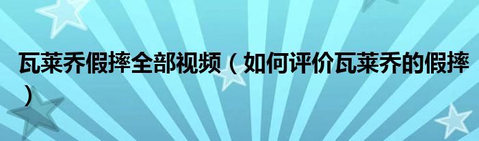 摘要大家好,小育來為大家講解下。瓦萊喬假摔全部視頻,如何評價瓦萊喬的假摔很多人還不知道,現(xiàn)在讓我們一起來看看吧!1、表演天賦出眾,在場