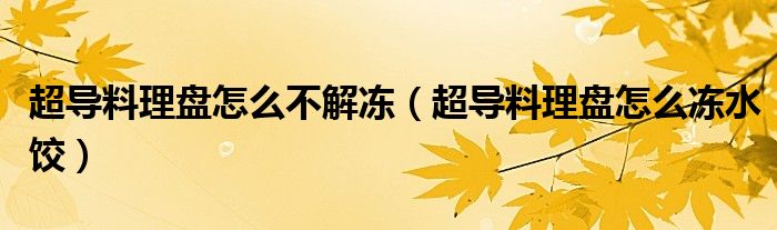 大家好,小育來為大家講解下。超導料理盤怎么不解凍,超導料理盤怎么凍水餃很多人還不知道,現在讓我們一起來看看吧!