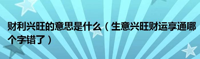 大家好,小育來(lái)為大家講解下。財(cái)利興旺的意思是什么,生意興旺財(cái)運(yùn)享通哪個(gè)字錯(cuò)了很多人還不知道,現(xiàn)在讓我們一起來(lái)看看吧!
