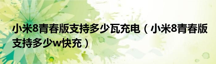 大家好,小育來(lái)為大家講解下。小米8青春版支持多少瓦充電,小米8青春版支持多少w快充很多人還不知道,現(xiàn)在讓我們一起來(lái)看看吧!