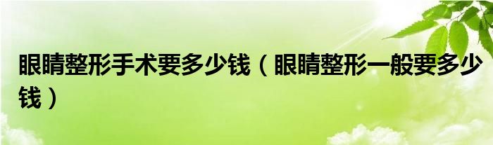大家好,知識小編來為大家解答以上的問題。眼睛整形手術(shù)要多少錢,眼睛整形一般要多少錢很多人還不知道,現(xiàn)在讓我們一起來看看吧!