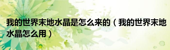 大家好,小育來為大家講解下。我的世界末地水晶是怎么來的,我的世界末地水晶怎么用很多人還不知道,現(xiàn)在讓我們一起來看看吧!