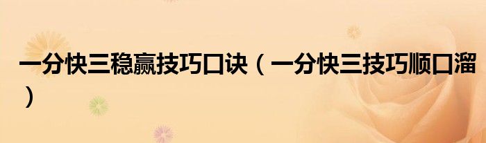 大家好,小育來(lái)為大家講解下。一分快三穩(wěn)贏技巧口訣,一分快三技巧順口溜很多人還不知道,現(xiàn)在讓我們一起來(lái)看看吧!