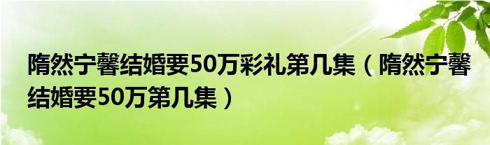 大家好,小育來為大家講解下。隋然寧馨結婚要50萬彩禮第幾集,隋然寧馨結婚要50萬第幾集很多人還不知道,現(xiàn)在讓我們一起來看看吧!