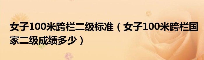 大家好,小育來為大家講解下。女子100米跨欄二級標(biāo)準(zhǔn),女子100米跨欄國家二級成績多少很多人還不知道,現(xiàn)在讓我們一起來看看吧!