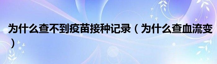 大家好,知識小編來為大家解答以上的問題。為什么查不到疫苗接種記錄,為什么查血流變很多人還不知道,現(xiàn)在讓我們一起來看看吧!