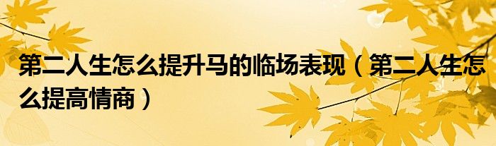 摘要大家好,小育來為大家講解下。第二人生怎么提升馬的臨場表現(xiàn),第二人生怎么提高情商很多人還不知道,現(xiàn)在讓我們一起來看看吧!1、小時候我
