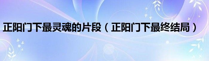 大家好,小育來為大家講解下。正陽門下最靈魂的片段,正陽門下最終結(jié)局很多人還不知道,現(xiàn)在讓我們一起來看看吧!