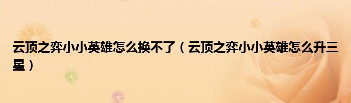 大家好,小育來為大家講解下。云頂之弈小小英雄怎么換不了,云頂之弈小小英雄怎么升三星很多人還不知道,現(xiàn)在讓我們一起來看看吧!