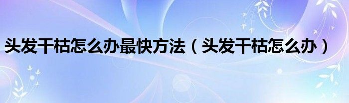 大家好,知識(shí)小編來為大家解答以上的問題。頭發(fā)干枯怎么辦最快方法,頭發(fā)干枯怎么辦很多人還不知道,現(xiàn)在讓我們一起來看看吧!