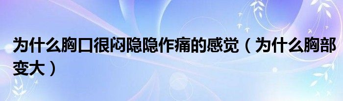 大家好,知識(shí)小編來(lái)為大家解答以上的問(wèn)題。為什么胸口很悶隱隱作痛的感覺(jué),為什么胸部變大很多人還不知道,現(xiàn)在讓我們一起來(lái)看看吧!