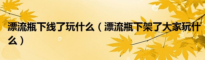 摘要大家好,小育來為大家講解下。漂流瓶下線了玩什么,漂流瓶下架了大家玩什么很多人還不知道,現(xiàn)在讓我們一起來看看吧!1、漂流瓶下架,大家