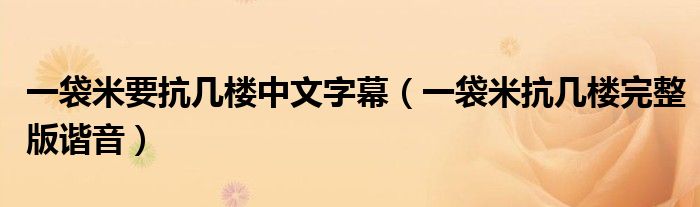 大家好,小育來(lái)為大家講解下。一袋米要抗幾樓中文字幕,一袋米抗幾樓完整版諧音很多人還不知道,現(xiàn)在讓我們一起來(lái)看看吧!