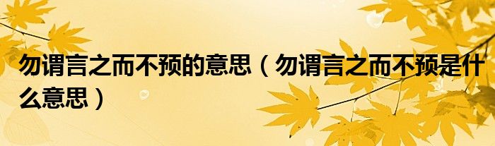 大家好,小育來為大家講解下。勿謂言之而不預(yù)的意思,勿謂言之而不預(yù)是什么意思很多人還不知道,現(xiàn)在讓我們一起來看看吧!