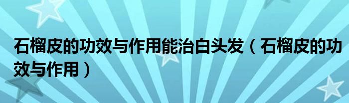 大家好,知識(shí)小編來(lái)為大家解答以上的問(wèn)題。石榴皮的功效與作用能治白頭發(fā),石榴皮的功效與作用很多人還不知道,現(xiàn)在讓我們一起來(lái)看看吧!