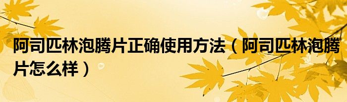 摘要大家好,知識小編來為大家解答以上的問題。阿司匹林泡騰片正確使用方法,阿司匹林泡騰片怎么樣很多人還不知道,現(xiàn)在讓我們一起來看看吧!1