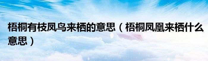 大家好,小育來(lái)為大家講解下。梧桐有枝鳳鳥來(lái)?xiàng)囊馑?,梧桐鳳凰來(lái)?xiàng)裁匆馑己芏嗳诉€不知道,現(xiàn)在讓我們一起來(lái)看看吧!