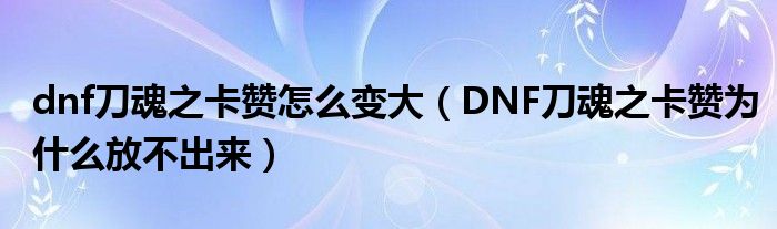 大家好,小育來為大家講解下。dnf刀魂之卡贊怎么變大,DNF刀魂之卡贊為什么放不出來很多人還不知道,現在讓我們一起來看看吧!