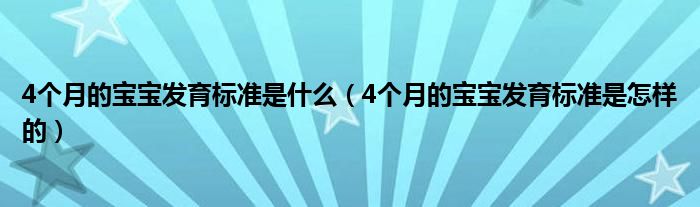 大家好,知識小編來為大家解答以上的問題。4個月的寶寶發(fā)育標(biāo)準(zhǔn)是什么,4個月的寶寶發(fā)育標(biāo)準(zhǔn)是怎樣的很多人還不知道,現(xiàn)在讓我們一起來看看吧!