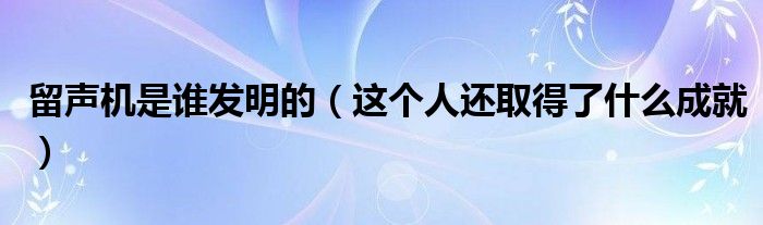 大家好,伊人來為大家解答以上問題。留聲機是誰發(fā)明的,這個人還取得了什么成就很多人還不知道,現(xiàn)在讓我們一起來看看吧!