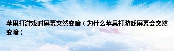 大家好,小育來為大家講解下。蘋果打游戲時屏幕突然變暗,為什么蘋果打游戲屏幕會突然變暗很多人還不知道,現(xiàn)在讓我們一起來看看吧!