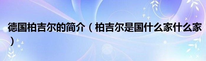 大家好,小育來為大家講解下。德國柏吉爾的簡介,柏吉爾是國什么家什么家很多人還不知道,現(xiàn)在讓我們一起來看看吧!
