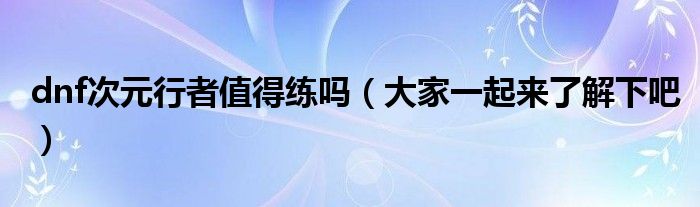 大家好,伊人來為大家解答以上問題。dnf次元行者值得練嗎,大家一起來了解下吧很多人還不知道,現(xiàn)在讓我們一起來看看吧!