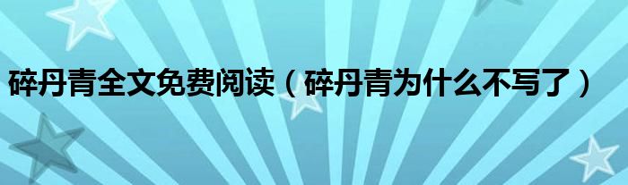 大家好,小育來為大家講解下。碎丹青全文免費(fèi)閱讀,碎丹青為什么不寫了很多人還不知道,現(xiàn)在讓我們一起來看看吧!