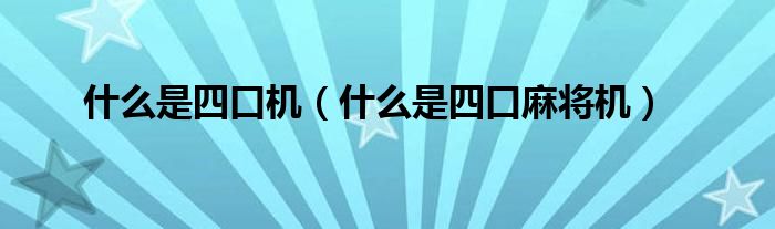 大家好,小育來為大家講解下。什么是四口機,什么是四口麻將機很多人還不知道,現(xiàn)在讓我們一起來看看吧!