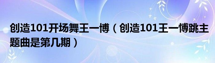 大家好,小育來為大家講解下。創(chuàng)造101開場舞王一博,創(chuàng)造101王一愽跳主題曲是第幾期很多人還不知道,現在讓我們一起來看看吧!