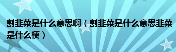大家好,小育來為大家講解下。割韭菜是什么意思啊,割韭菜是什么意思韭菜是什么梗很多人還不知道,現在讓我們一起來看看吧!