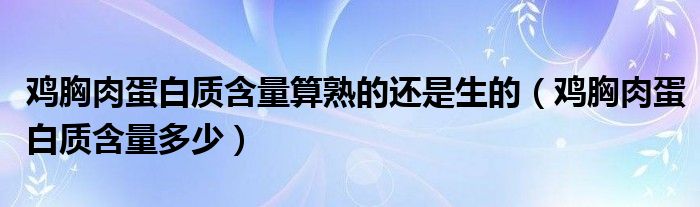 大家好,小育來為大家講解下。雞胸肉蛋白質(zhì)含量算熟的還是生的,雞胸肉蛋白質(zhì)含量多少很多人還不知道,現(xiàn)在讓我們一起來看看吧!