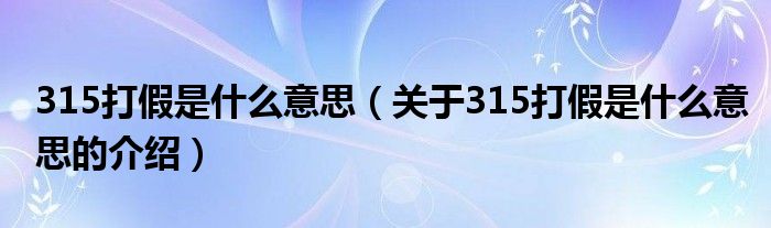 大家好,小新來為大家解答以上的問題。315打假是什么意思,關(guān)于315打假是什么意思的介紹很多人還不知道,現(xiàn)在讓我們一起來看看吧!