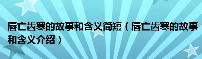 摘要大家好,伊人來(lái)為大家解答以上問(wèn)題。唇亡齒寒的故事和含義簡(jiǎn)短,唇亡齒寒的故事和含義介紹很多人還不知道,現(xiàn)在讓我們一起來(lái)看看吧!1、唇