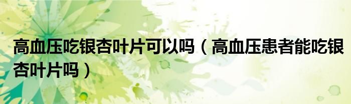 摘要大家好,小新來為大家解答以上的問題。高血壓吃銀杏葉片可以嗎,高血壓患者能吃銀杏葉片嗎很多人還不知道,現(xiàn)在讓我們一起來看看吧!銀杏葉