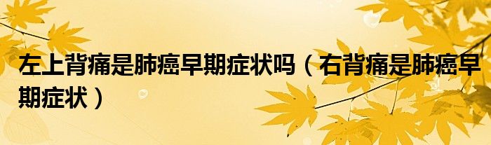 大家好,小新來(lái)為大家解答以上的問(wèn)題。左上背痛是肺癌早期癥狀嗎,右背痛是肺癌早期癥狀很多人還不知道,現(xiàn)在讓我們一起來(lái)看看吧!