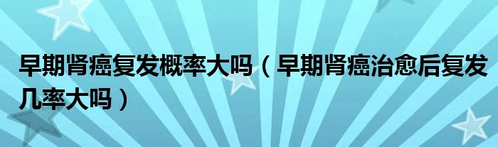 摘要大家好,小新來為大家解答以上的問題。早期腎癌復發(fā)概率大嗎,早期腎癌治愈后復發(fā)幾率大嗎很多人還不知道,現(xiàn)在讓我們一起來看看吧!復發(fā)是