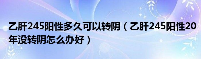 大家好,小新來(lái)為大家解答以上的問(wèn)題。乙肝245陽(yáng)性多久可以轉(zhuǎn)陰,乙肝245陽(yáng)性20年沒(méi)轉(zhuǎn)陰怎么辦好很多人還不知道,現(xiàn)在讓我們一起來(lái)看看吧!
