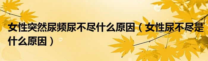 摘要大家好,小新來為大家解答以上的問題。女性突然尿頻尿不盡什么原因,女性尿不盡是什么原因很多人還不知道,現(xiàn)在讓我們一起來看看吧!女性尿