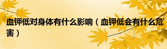 摘要大家好,小新來為大家解答以上的問題。血鉀低對(duì)身體有什么影響,血鉀低會(huì)有什么危害很多人還不知道,現(xiàn)在讓我們一起來看看吧!當(dāng)血清鉀低于