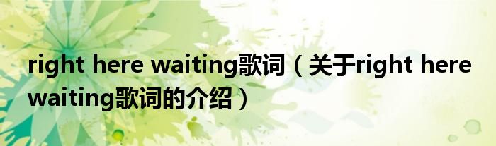 摘要 大家好,小新來為大家解答以上的問題。right here waiting歌詞,關(guān)于right here waiting歌詞的介紹很多人還不知道,現(xiàn)在讓我們一起來看